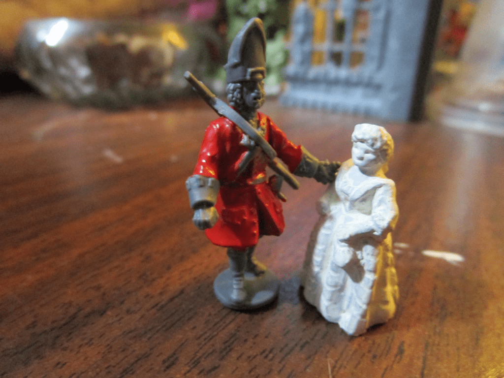 Theirs was a forbidden love. He was plastic and 1/56 scale. She was lead and 20 mm scale. He was made in China and she was cast in England….The only thing they had going for them was they were from the same era….