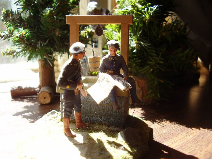 “Lost in Belgium…or is it, looking for Madame Fifi’s?” Two Heller chasseurs alpins resting on an Italiari well…