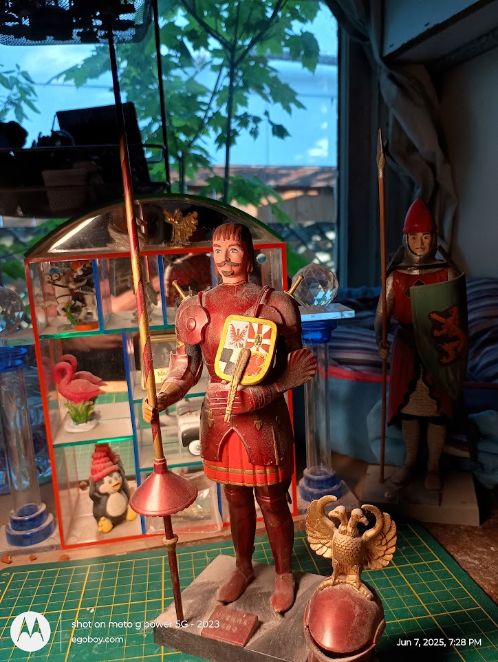 1950s Aurora Models of W. Hempstead, New York (Originally Brooklynn, NY). 1/8th scale Red knight of Vienna…lurking in the background is the Aurora Crusader Knight…