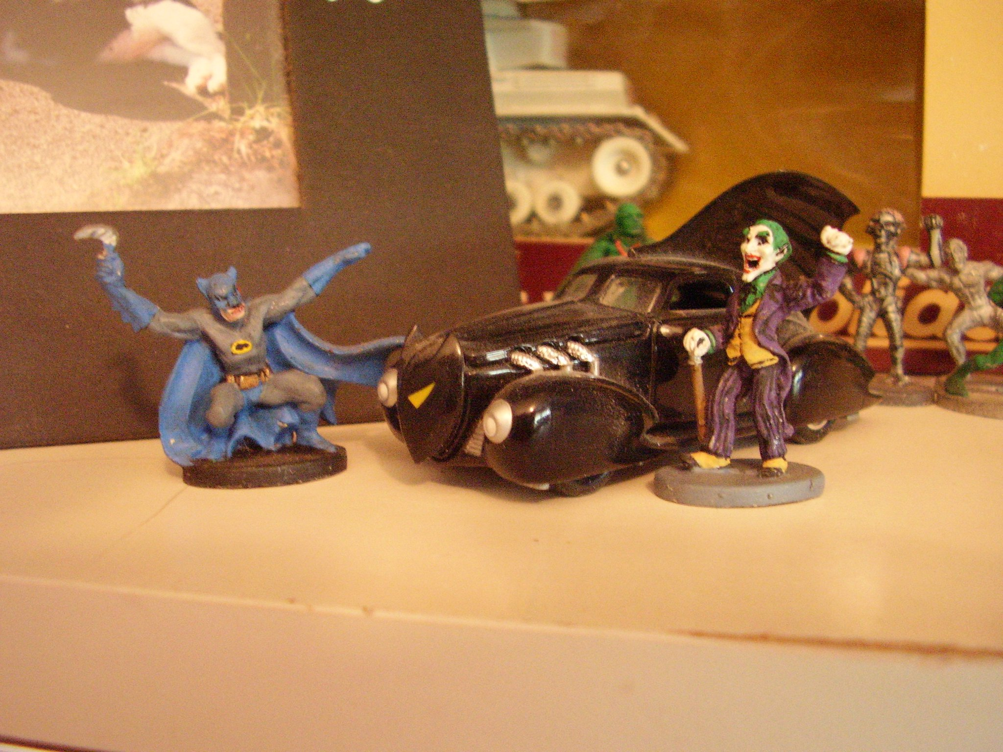 When you run into old friends at the Drive-In Movies…vintage Grenadier Models DC 25mm figures and I think a 1940s Johnny Lightning Batmobile.