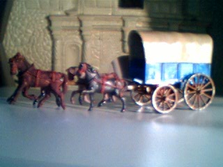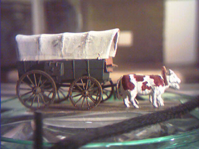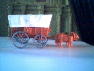 Recalling the old Athearn model kit of the same subject (‘O’ scale I think)or even the Marx 1/32 versian, the bullock propelled imex wagon is a gem filled with potential for many periods and uses.